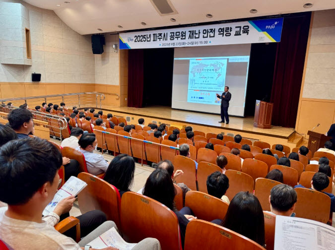 이번 교육은 재난 관련 업무 담당자뿐만 아니라 파주시 전체 공무원을 대상으로 처음 진행된 대규모 재난안전 교육으로, 총 2회에 걸쳐 실시했다.